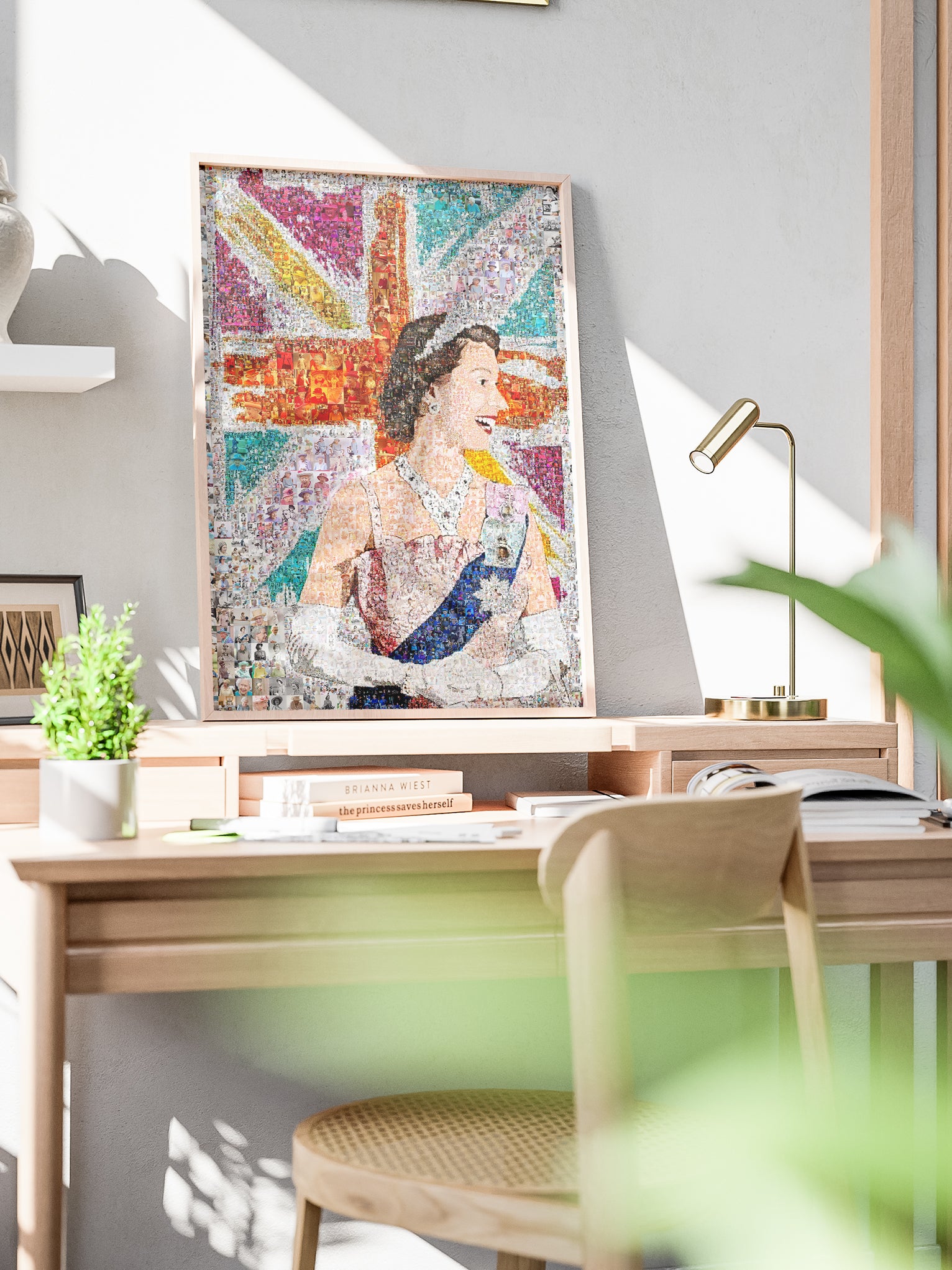Celebrate the legacy of Queen Elizabeth II with this stunning mosaic artwork. Perfect for royal enthusiasts, collectors, and admirers of British history. This piece captures the grace and charm of the former monarch, making it an ideal addition to any art collection or as a unique gift. Each detail is meticulously crafted to reflect the elegance of Her Majesty, ensuring this artwork will be a cherished focal point in your home or office. Embrace the history and beauty associated with one of the UK's most beloved figures.
