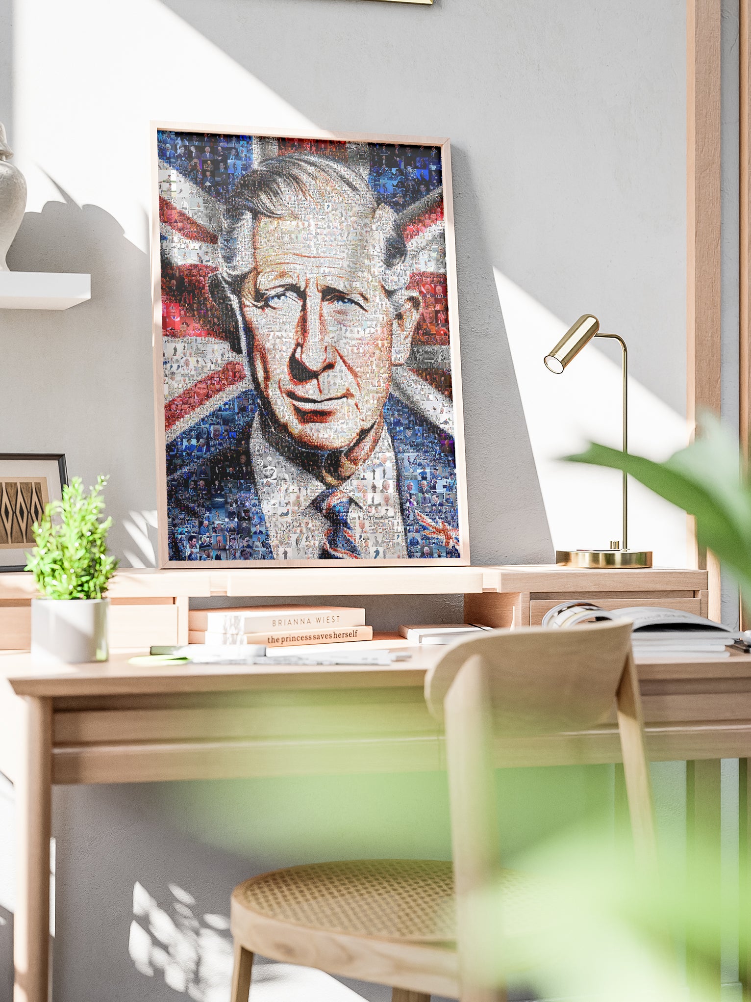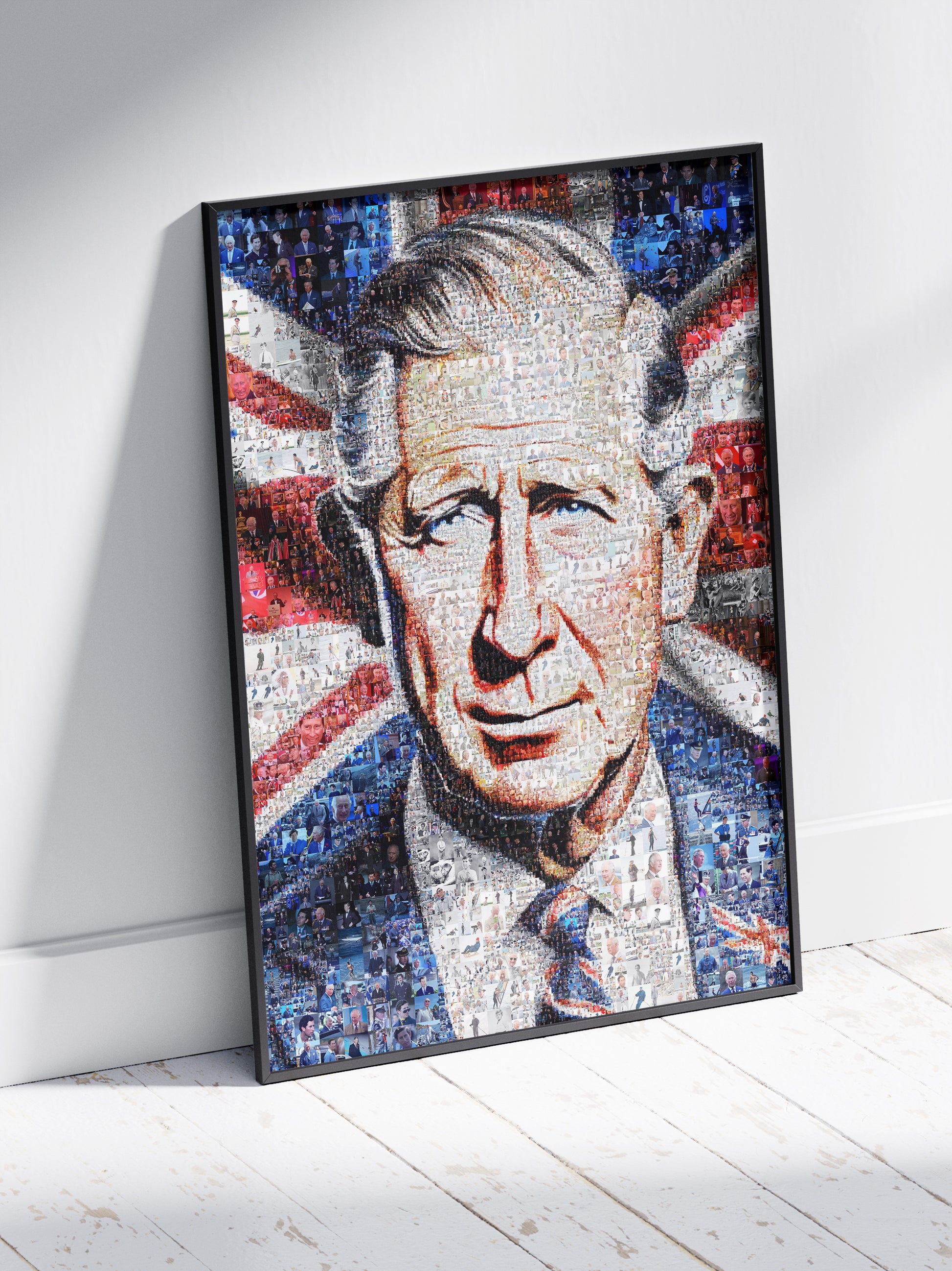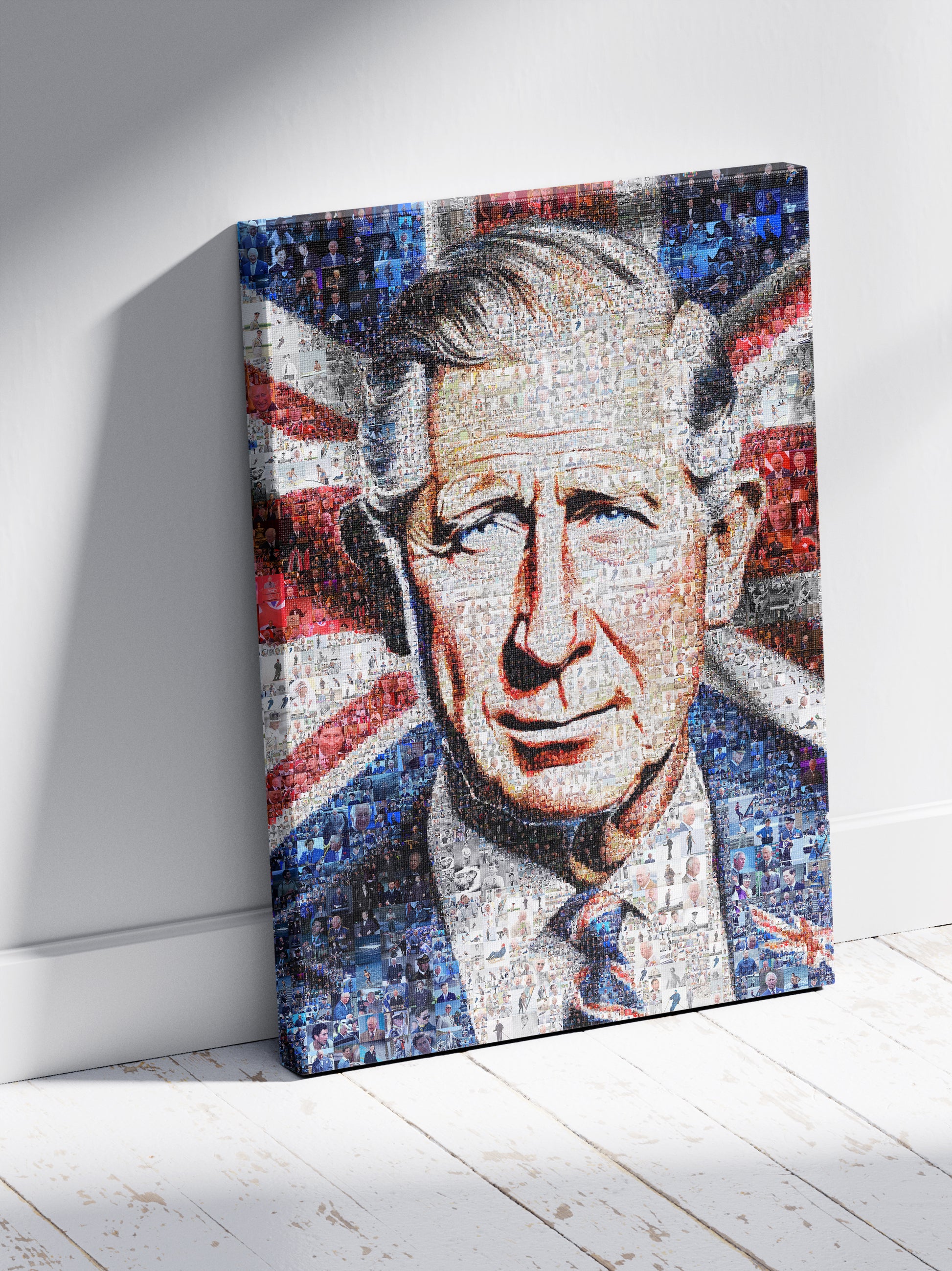 Celebrate the legacy of King Charles III with this stunning mosaic artwork. Perfect for collectors and royal enthusiasts, this piece combines modern artistry with traditional themes, making it an ideal addition to any room. The vibrant colors and intricate design capture the essence of the monarch, offering a unique perspective on his reign. Whether displayed in a living room, office, or gallery, this artwork serves as a conversation starter and a symbol of British heritage. Elevate your decor with this exquisite tribute to King Charles III.