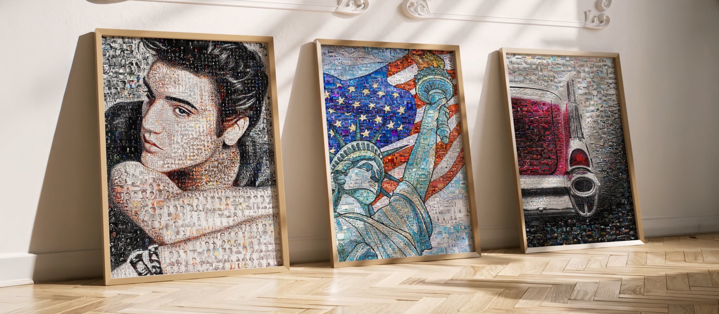 Explore mosaic posters inspired by iconic cities, legendary musicians, and remarkable personalities - all made from hundreds of photos.