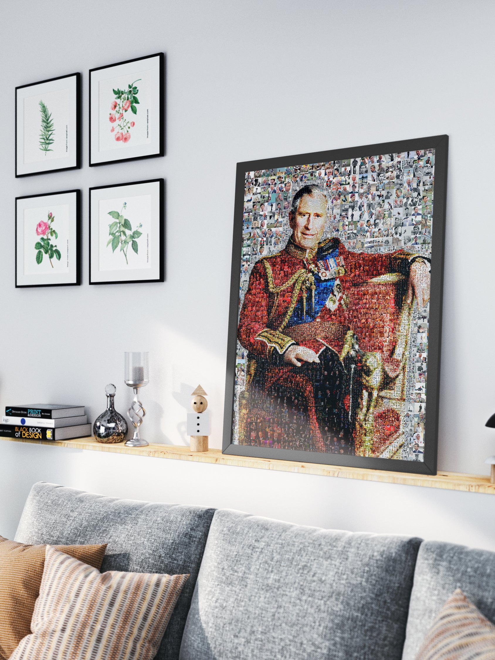 Enhance your space with this exquisite mosaic artwork featuring King Charles III. The vibrant colors and intricate details bring a modern twist to classic royal portraiture. Perfect for collectors and admirers of contemporary art, this piece captures the essence of British royalty. Ideal for display in living rooms, offices, or as a unique gift. Make a statement with this captivating artwork that celebrates heritage and artistry.